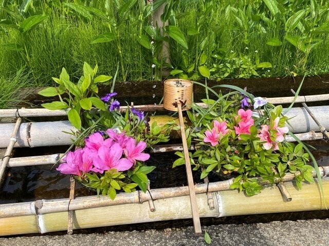 二尊院では花手水も見所の一つです。今日は、予想していたより少なかったですね。